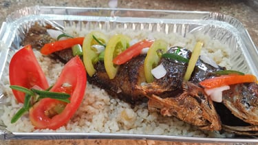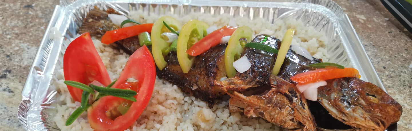 Poisson frais délicatement assaisonné et grillé à la perfection, offrant une chair tendre et savoureuse, légèrement parfumée aux épices et herbes locales.