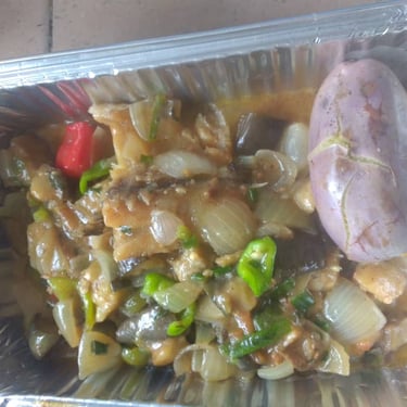 Savourez notre poisson salé aux aubergines : un classique congolais revisité avec des légumes tendres et des épices traditionnelles, pour un plat parfumé et plein de caractère.